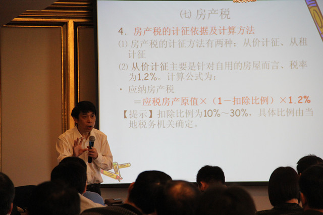 喻教授曾参与我国多部涉税法律、法规制订工作,对税收法规有着比常人更深刻的理解与思考,是一位理论与实战兼备的税务专家。在课堂上,他不仅站在税收遵从的角度,对纳税义务人应有的税收法规知识进行了剖析,而且站在“立法者”的角度对税法进行了精彩的诠释,将税法条款背后的缘由娓娓道来。他从公司纳税筹划引导性问题开题,向大家介绍了我国税收的基础知识与税收体系,以案例的形式分析了18种税收筹划的基本方法,并对增值税、企业所得税作了重点阐述。针对大家普遍关注的房地产企业涉税事项,进行了耐心细致的讲解。
